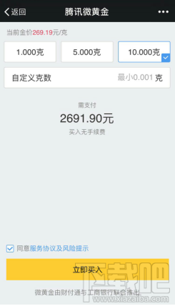 点击进入购买页面,首先就能看到黄金的“当前金价”、“成本均价”及“累计浮动盈亏”,一目了然。黄金的收益是根据上海黄金交易所的金价浮动来计算的,说白了,就是买了之后,可以通过买卖的差价赚收益。