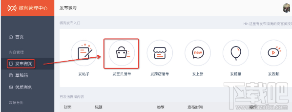 step1:登陆微淘商家2.0后台:https://scholar.taobao.com,发布微淘-发宝贝清单