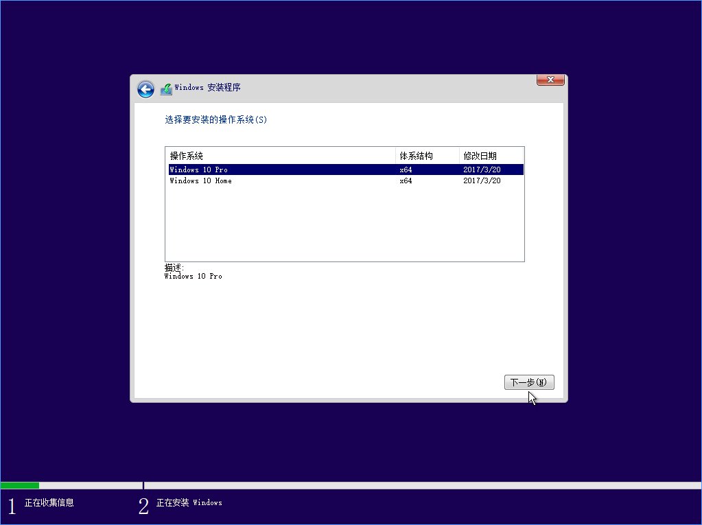 提示:如果是多版本的镜像文件会看到此界面,单一版本的系统安装镜像无此界面。