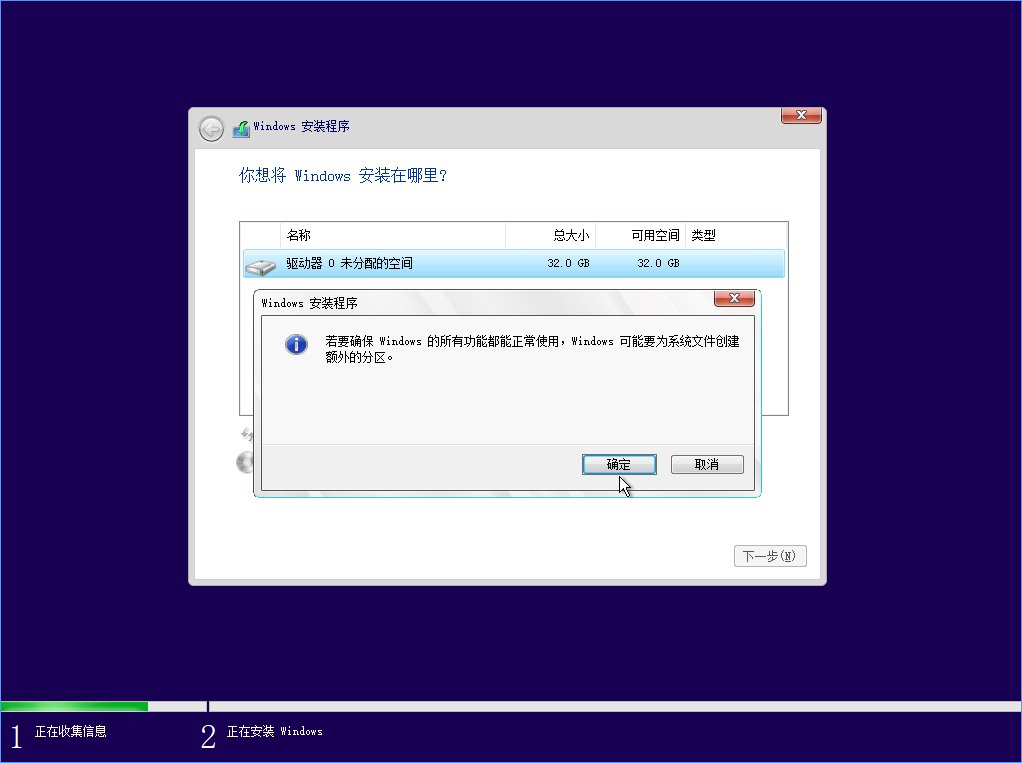 8、你想执行哪种类型的安装?(全新安装Win10系统,请选择自定义:仅安装Windows(高级))