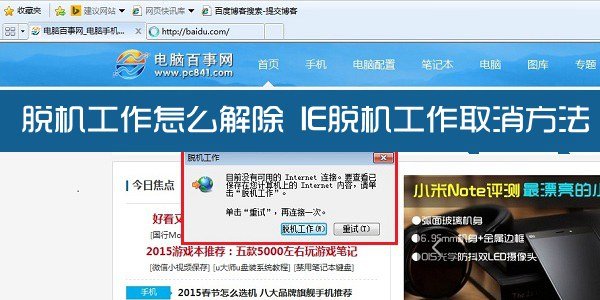 脱机工作怎么解除?最近小编电脑IE浏览器总是在断网后会弹出一个脱机工作对话框,提示“目前没有可用的Internet连接。要查看已保存在您计算机上的Internet内容,请单击“脱机工作”。很多时候只是偶尔网络不稳定导致,但经常提示这个提示,总是很反感,那么浏览器中的脱机工作怎么取消?以下是详细的解决办法,希望对遇到类似电脑问题的朋友有所帮助。