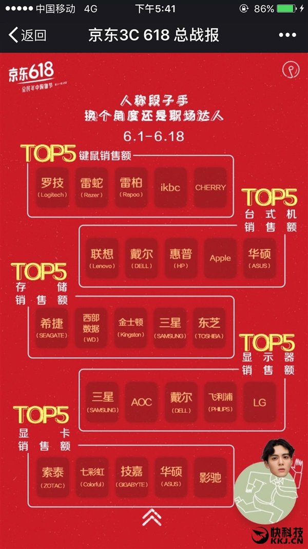 在2017年京东618狂欢节上,ikbc凭借着出色的销量超越chreey,在京东键鼠品类中销量排名第四!