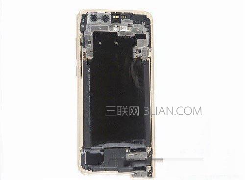 掀下电池、主板的表面覆盖的石墨片。荣耀9采用了常见的 “三段式”设计,底部为UBS-C主板,中间为电池,上部则为主板。