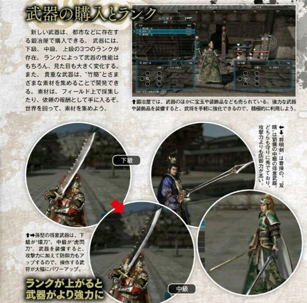 FAMI通公开了《真三国无双8》的最新杂志内容,几位玩家非常熟悉的武将再次登场,以全新的面貌和玩家见面,另外还有游戏中武器的特性和强化内容也在杂志中公布,高清大图预计在今日下午的官网上更新放出。
