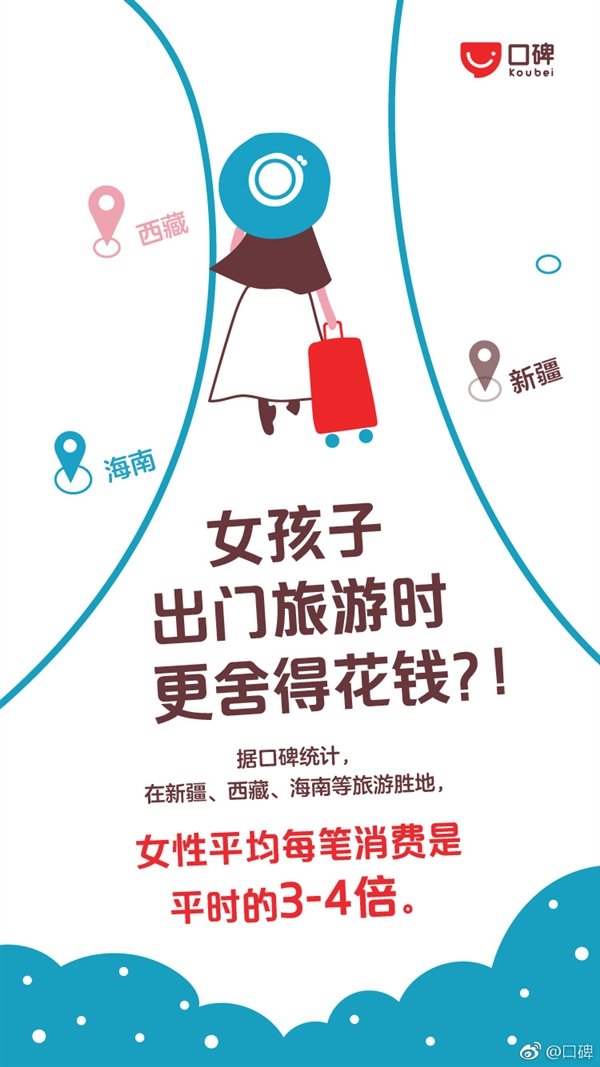 女性对旅游也是情有独钟,在新疆、西藏、海南等地游玩是哦平均每笔消费是平时的3-4倍。