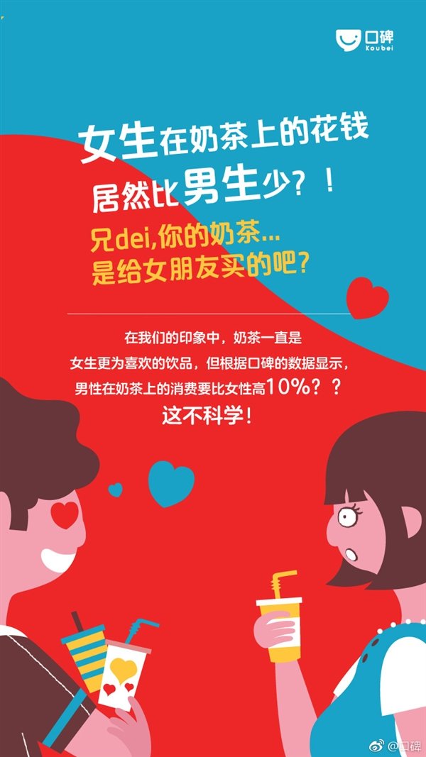 最后是一个奇怪的数据,男性在奶茶上的消费反而比女性高10%——或许,女生们手里的奶茶,都是男友们买的吧。