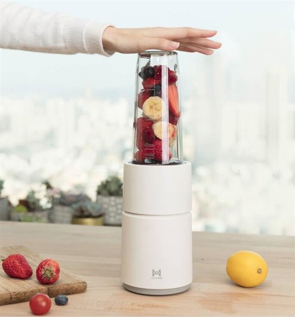 Pinlo小怪兽料理机设计简约,无按钮设计,机身仅332mm高,底座直径仅108mm,体积比一瓶2L的可乐还小巧。