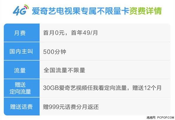 同时还包括30GB爱奇艺任我看专属流量(赠送12个月),更适合与电视果4G搭配使用,关键是只需要预存399元的话费就可以免费获得电视果4G,这么来看就相当合适了。